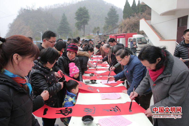 安徽省书法家协会的书法家为村民写春联 来源:中国文明网